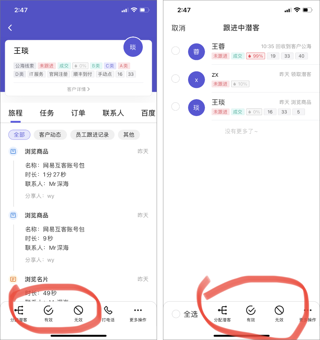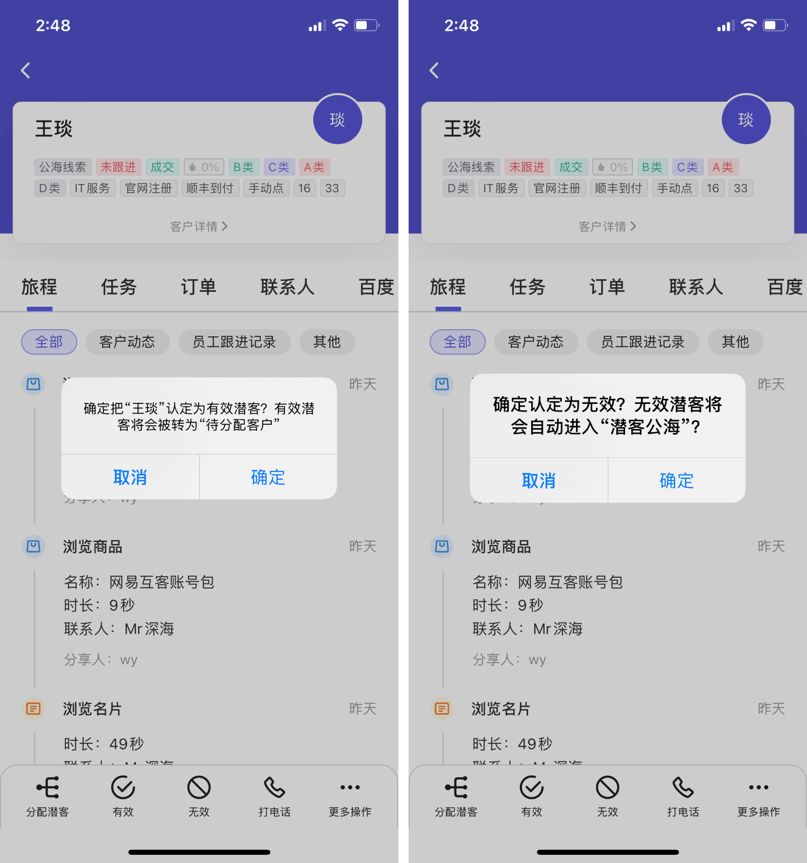 点击【无效】,即把此潜客认定为无效。无效潜客将自动进入“潜客公海”;