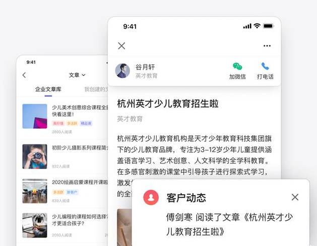 ”赋能内容互动内容工具包,客户雷达,销售名片