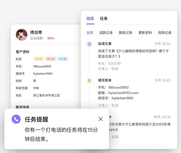“提效客户管理CRM组件,任务系统,客户运营