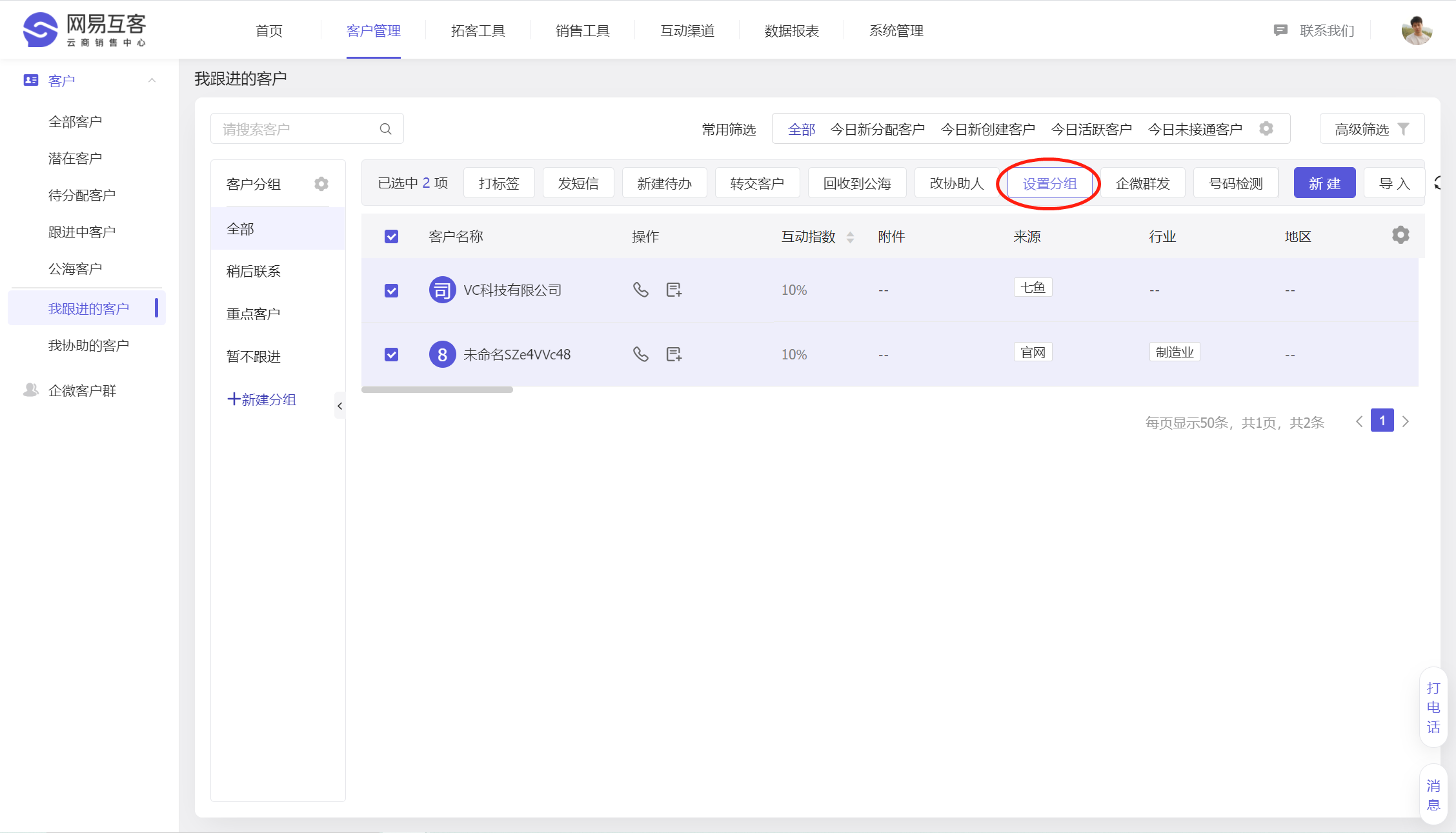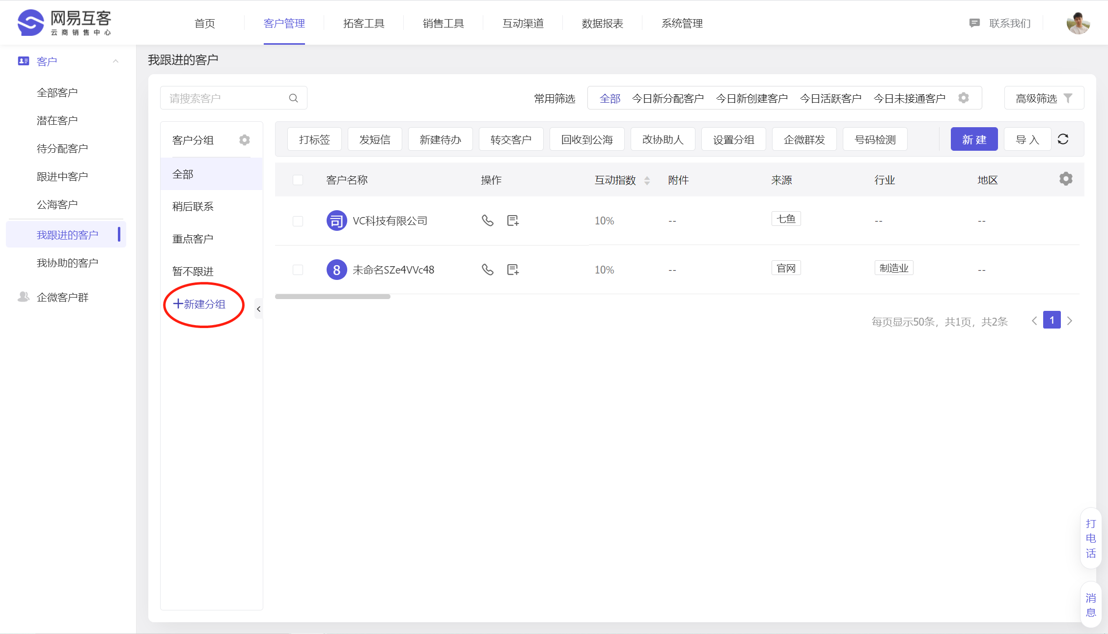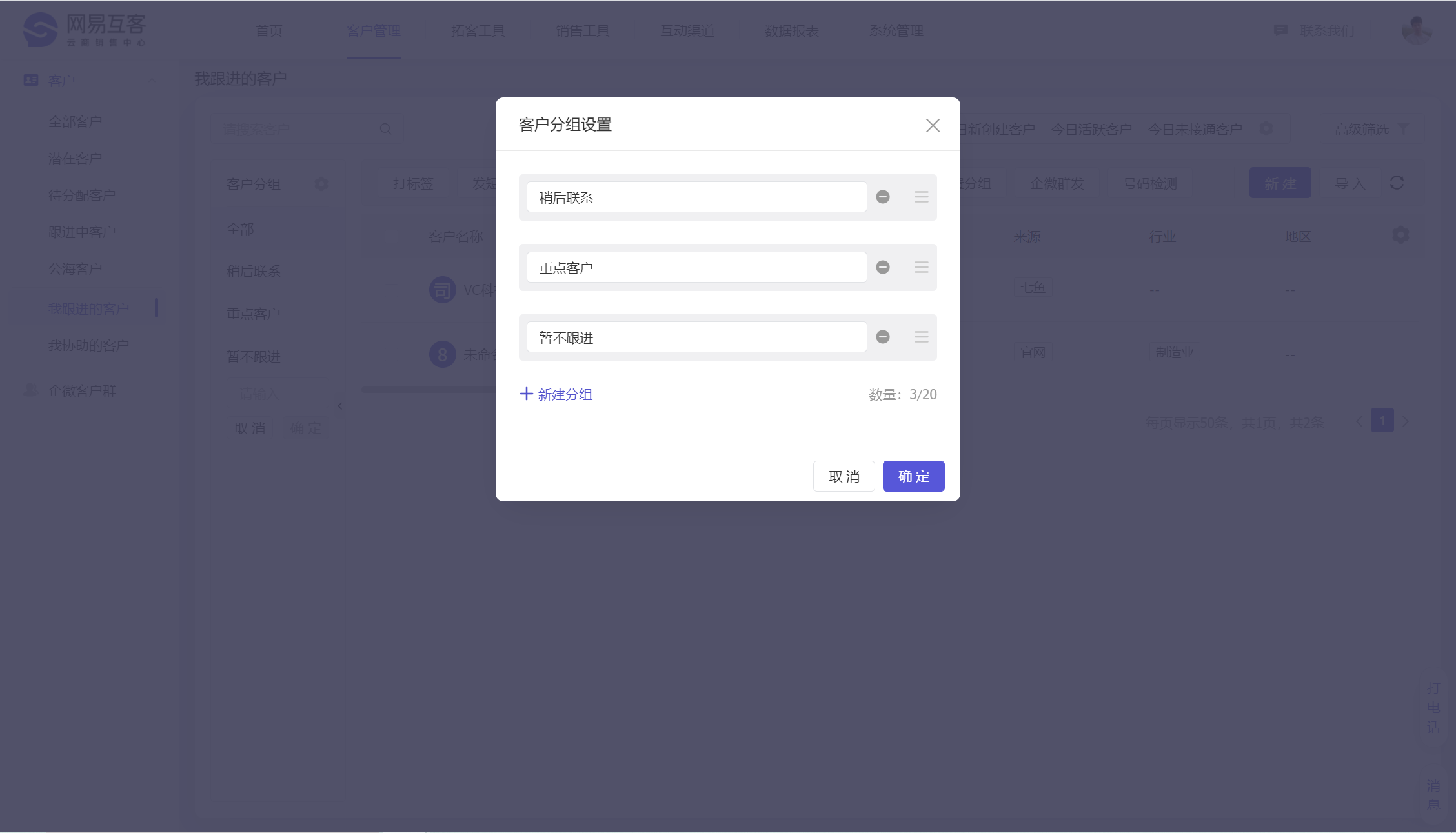 我们支持每个销售同学可以根据自己的销售习惯,去自定义客户分组,提升客户跟进效率。