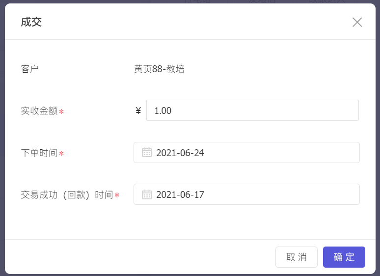 当客户有意向下订单时,可创建待付款类型订单,回款完成后,再将订单成交,再次确认客户实际付款情况。成交后的订单才进入业绩统计。